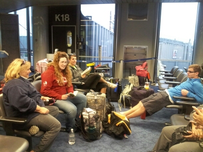 Jan. 3rd: Our travel adventure really began around 4am. Much to our surprise, when checking in, we were informed that a current embargo limited checked baggage to only two bags per person! Problem: We had five more suitcases than they would allow us to take. Solution: We began our first major team building exercise - fitting the important contents of those large suitcases into the other already full pieces of luggage. With the Lord's help,we successfully re-shifted everything and our luggage made it on the plane in time!
